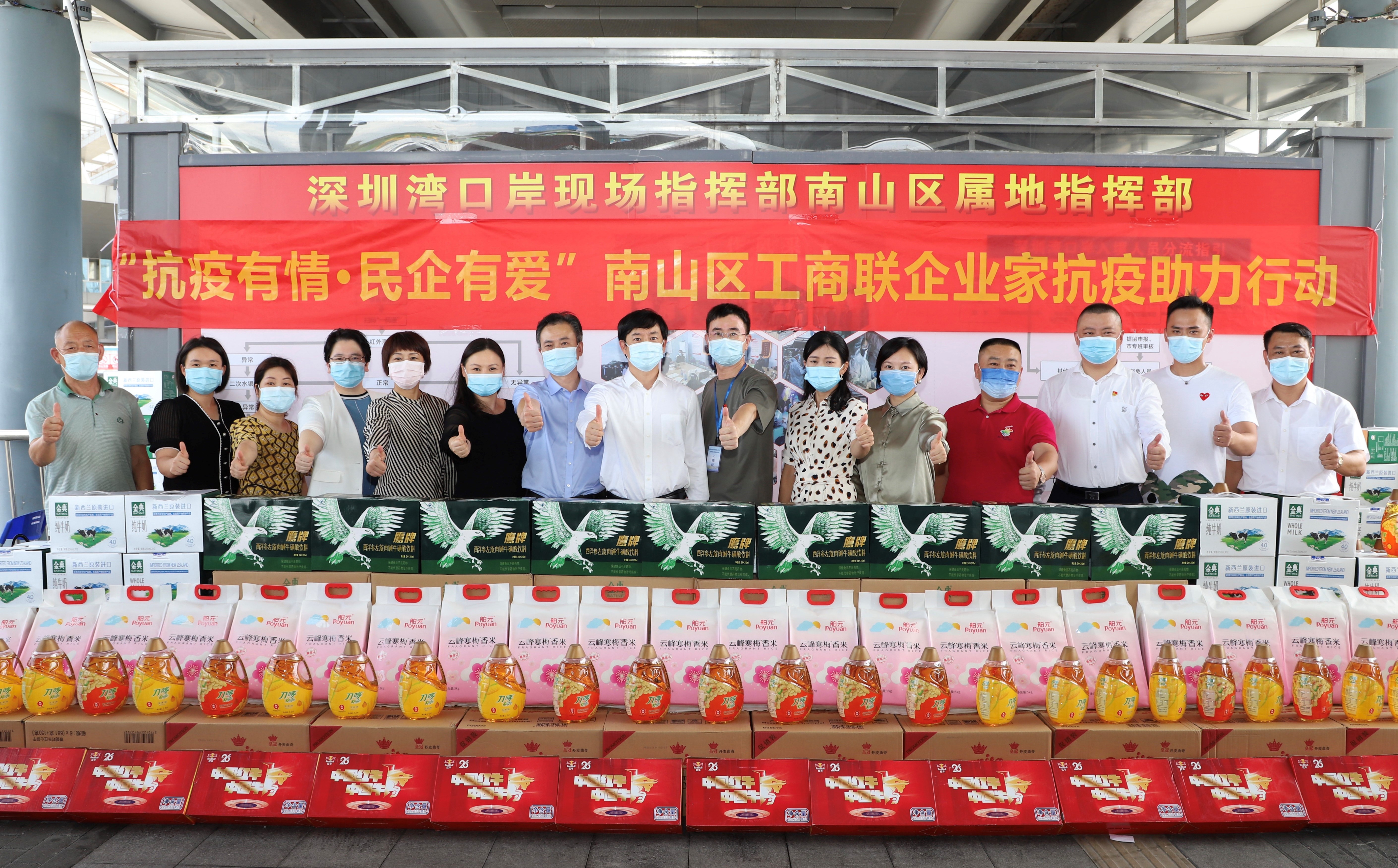 7月2日下午,深圳市南山区工商联专职副主席肖晓青、刘丽庄,二级调研员唐敏红等率队爱心企业家们开展“抗疫有情·民企有爱”抗疫助力行动,并一同前往深圳湾口岸慰问守护疫情防控“南大门”的一线防疫工作人员。